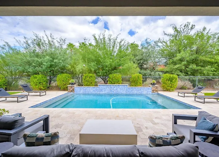 Cette propriété de Scottsdale est située dans le quartier "North Scottsdale" à Scottsdale, la vallée de Deer se trouve à une courte distance. À environ 10 minutes en voiture de cette villa de 4 chambres, vous trouverez le cadran solaire de Carefree, ainsi que le jardin de citrouilles enchanté de Carefree est à 15 minutes en voiture.